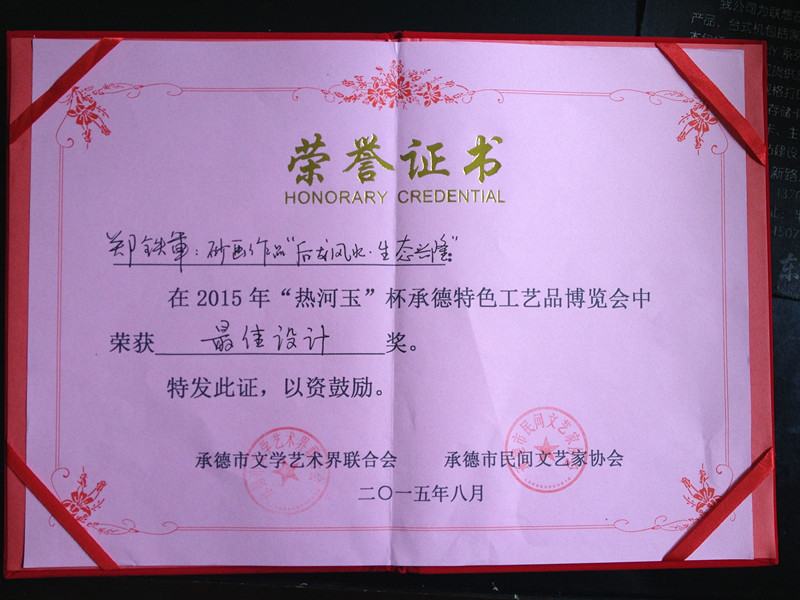 鄭氏砂藝在2015年“熱河玉”杯承德特色工藝品博覽會中榮獲《最佳設計獎》
